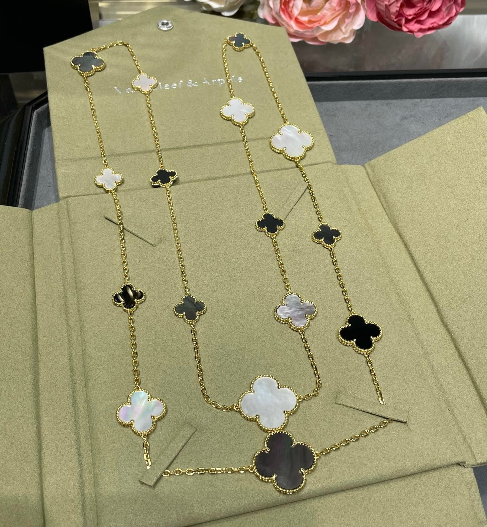 [Amore Jewelry]CLOVER 16 MOTIF CHALCEDONY MOP Gold NECKLACE